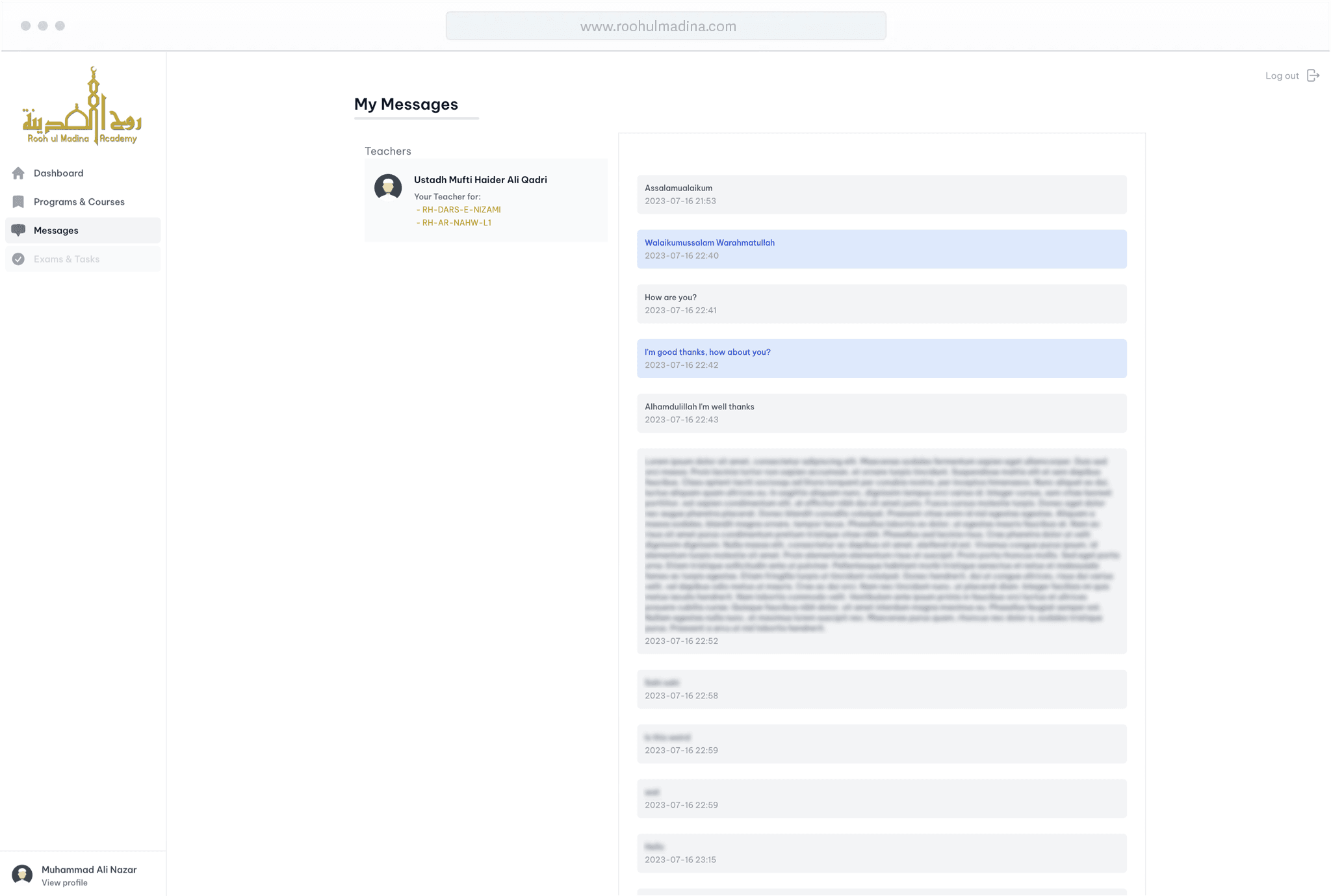 With the grace of Allah, I've studied at Rooh Ul Madina Academy since its inception. I've always felt that Rooh Ul Madina Academy combines both worlds of tradition and unparallelled modernity in terms of the way the courses are taught. The teachers are always available to answer questions and the course material is always available to students. I've never felt more at ease learning something so important to me, and having the ability to ask questions and receive correct answers is always reassuring.